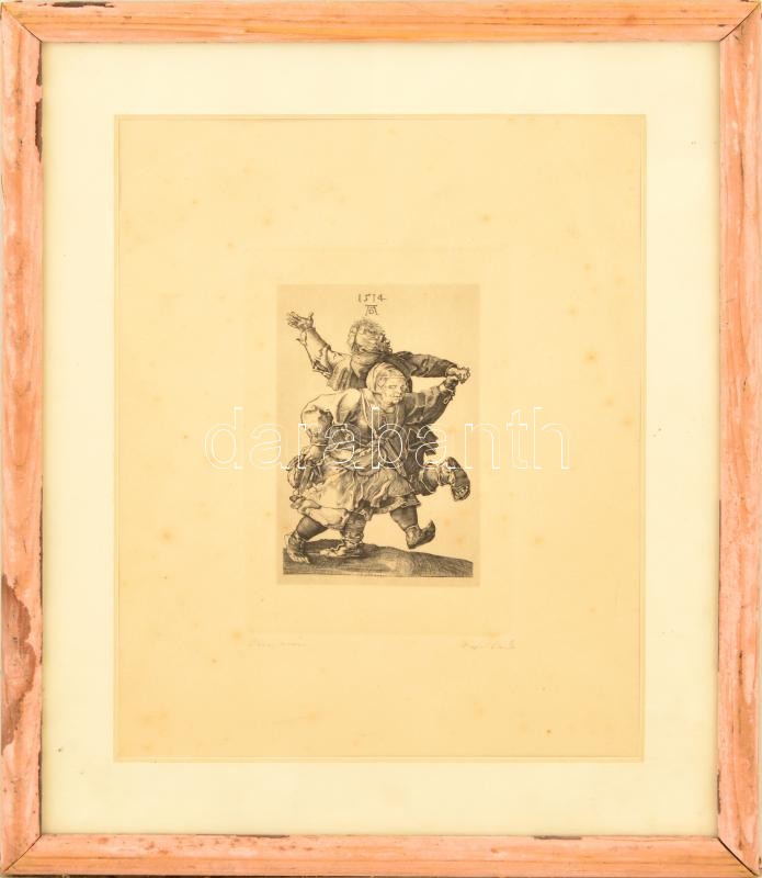 Leírás: Nagy Lázár László (1935-): Dürer után. Rézkarc, papír, jelzett, üvegezett keretben, 11x7 cm