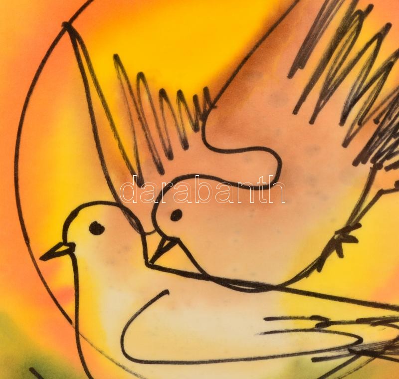 Leírás: Macskássy Izolda (1945- ): Turbékoló galambok, vegyes technika, selyempapír, jelzett, paszpartuban, üvegezett keretben, 33×23 cm