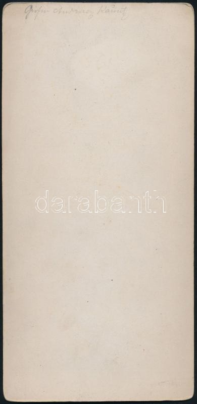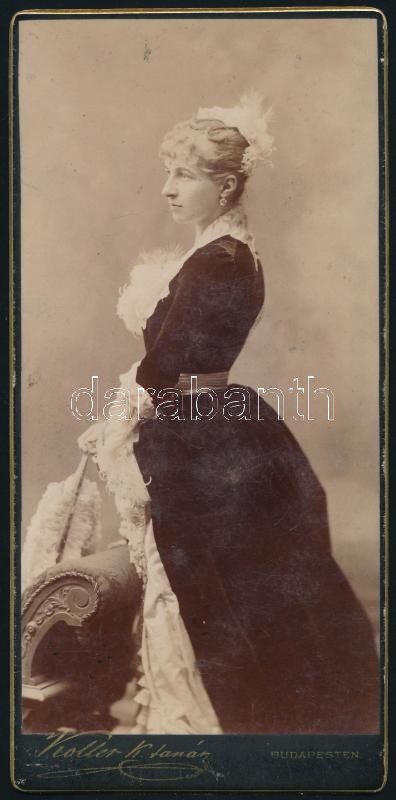 cca 1888 Gróf Andrássy Gézáné, Kaunitz Eleonóra grófnő (1862-1936), a betléri (Felvidék) Andrássy-kastély úrnőjének fotója, Koller budapesti műterméből, hátoldalon feliratozva, kis foltokkal, 10×21 cm