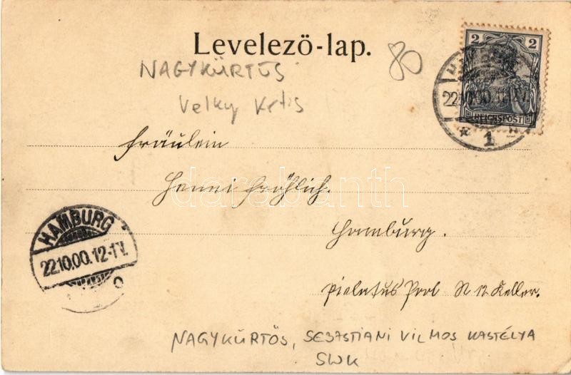 Leírás: 1900 Nagykürtös, Velky Krtís; Sebastiani Vilmos kastélya. Kiadja Wertheimer Zs. / castle (EK)