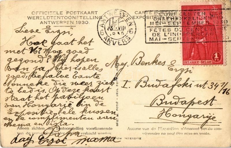 1930 Antwerp, Antwerpen, Anvers; Officieele Postkaart Wereldtentoonste... https://www.darabanth.com/hu/354-Gyorsarveres/354.0/Kepeslapok/Hungarika~1000081/1930-Antwerp-Antwerpen-Anvers-Officieele-Postkaart-Wereldtentoonstelling-Pavillon-de-la-Hongrie-~II2021641