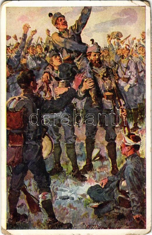 WWI K.u.k. military art postcard. Offizielle Karte für Rotes Kreuz Kriegsfürsorgeamt Kriegshilfsbüro Nr. 207. Aus dem goldenen Bücher der Armee Serie I. (EK)