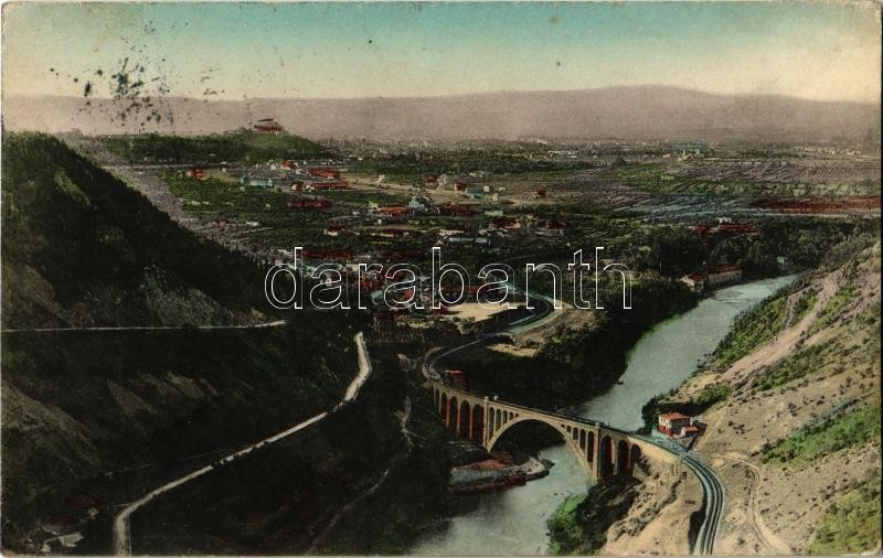 Leírás: Gorizia, Görz, Gorica; Ponte ferroviaria Salcano dal Monte Santo / Solkanski most / Salcanobrücke vom Monte Santo / railway bridge, viaduct