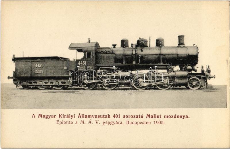 Leírás: Magyar Királyi Államvasutak 401. sorozatú Mallet mozdonya. Ledács Kiss Dezső kiadása / Hungarian State Railways locomotive