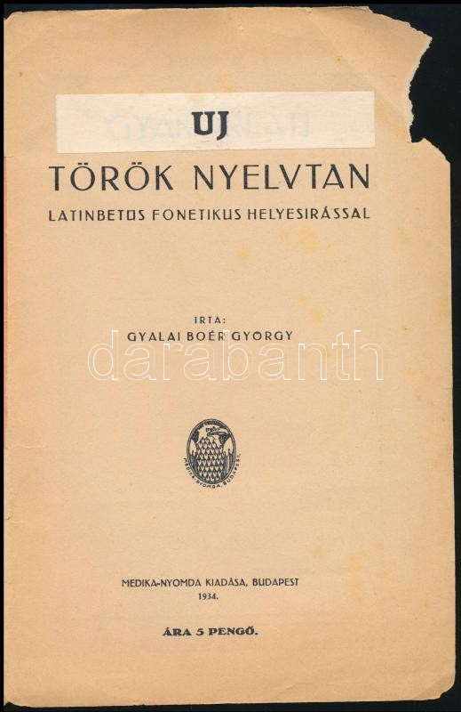 Gyalai Boér György: Gyakorlati török nyelvtan. Latinbetűs fonetikus he... https://www.darabanth.com/hu/354-Gyorsarveres/354.0/Konyvek/Konyvek-Egyeb-ritkasagok~2000017/Gyalai-Boer-Gyorgy-Gyakorlati-torok-nyelvtan-Latinbetus-fonetikus-helyesirassal-Bp-1934-~II2023756
