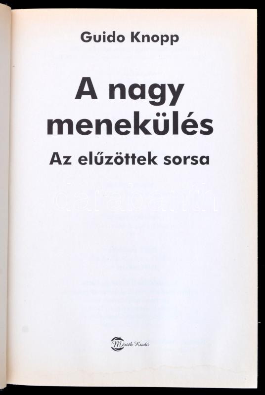 Knopp, Guido: A nagy menekülés. Az elűzöttek sorsa. Bp., 2004, Mérték ... https://www.darabanth.com/hu/354-Gyorsarveres/354.0/Konyvek/Konyvek-Egyeb-ritkasagok~2000017/Knopp-Guido-A-nagy-menekules-Az-eluzottek-sorsa-Bp-2004-Mertek-Kiado-Kartonalt-papi~II2023073