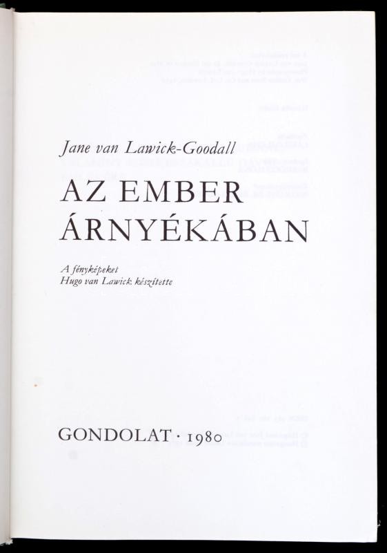 Leírás: Lawick-Goodall, Jane van: Az ember árnyékában. Bp., 1980, Gondolat. Vászonkötésben, papír védőborítóval, jó állapotban.