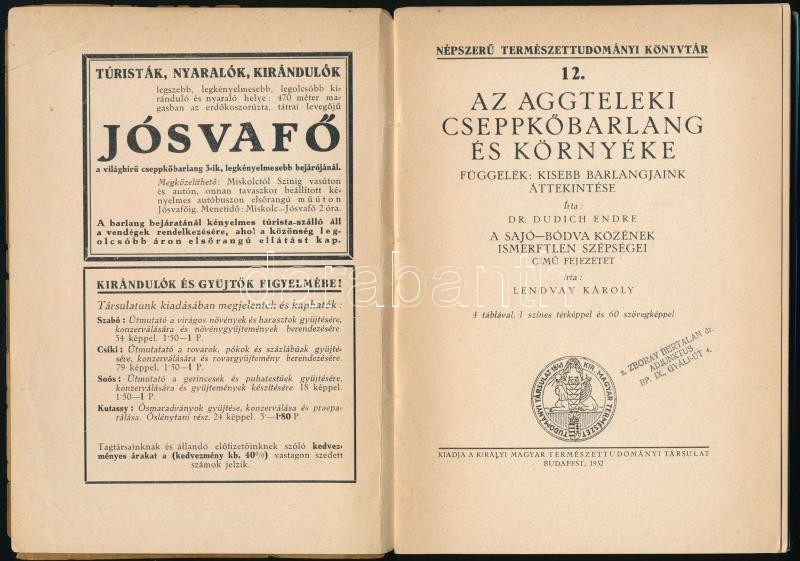 dr. Dudich Endre: Az aggteleki cseppkőbarlang és környéke. M. kir. Ter... https://www.darabanth.com/hu/354-Gyorsarveres/354.0/Konyvek/Konyvek-Utazas-helytortenet~2000001/dr-Dudich-Endre-Az-aggteleki-cseppkobarlang-es-kornyeke-M-kir-Term-tud-Tars-Szakadozott-p~II2023764