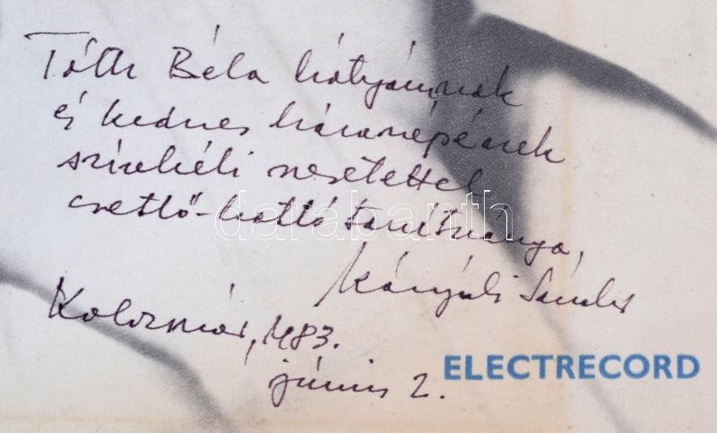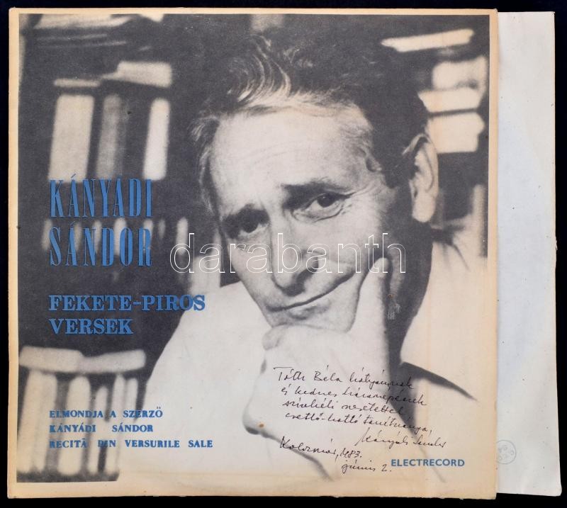 1983 Kányádi Sándor (1929-2018) költő Tóth Béla (1908-1996) irodalomtörténésznek szóló dedikációja és aláírása "Fekete-piros versek" c. kötetének bakelit-felvételén