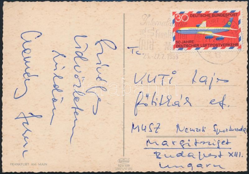 Leírás: Kemény Ferenc vízilabdaedző aláírása levelezőlapon