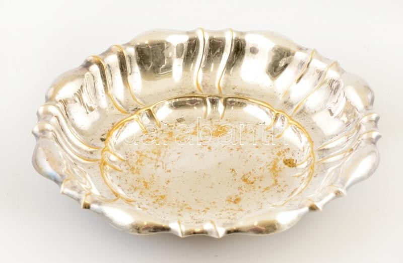 Leírás: Ezüstözött kerek kínálótál, kopott, d: 23 cm
