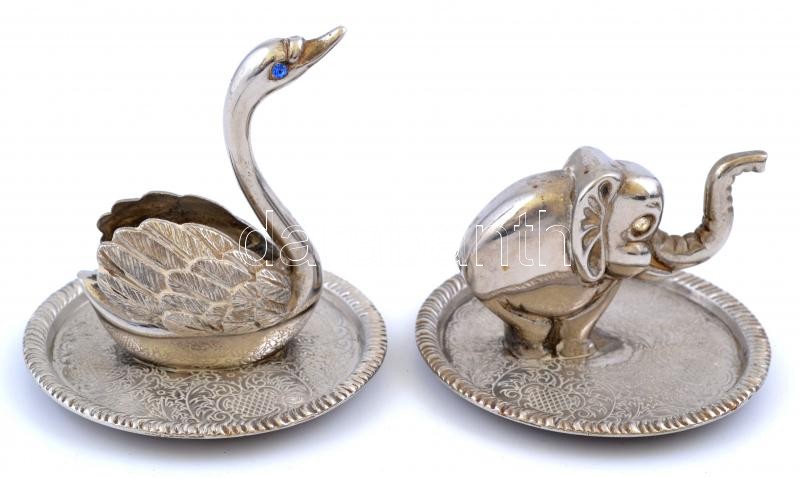 Leírás: Ezüstszínű elefántos és hattyús gyűrűtartó, m: 5 cm