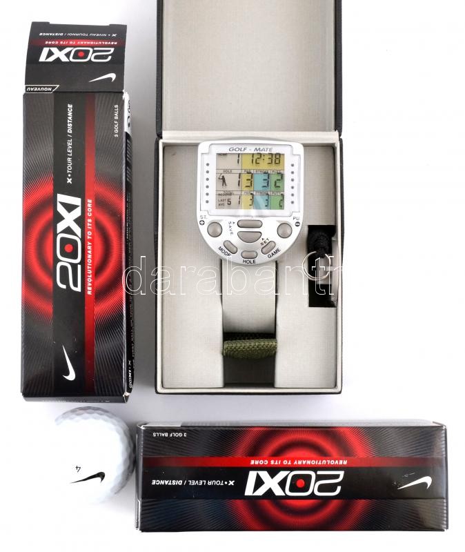 Leírás: Nike golflabdák, 2×3 db + golfjáték mérő óra, eredeti dobozában, útmutatóval, csatja törött