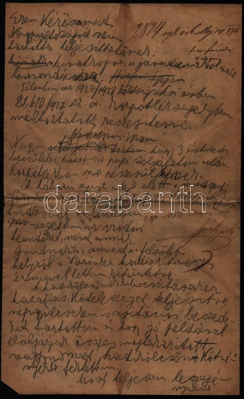 Leírás: 1928 Hódmezővásárhely, Büchler Gyula rabbi miniszternek szóló kézírásos levele