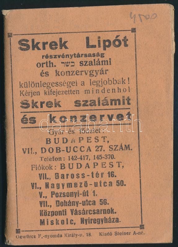 Zsidó zsebnaptár 1938-39 sok reklámmal. Tűzött papírkötésben. 12 cm https://www.darabanth.com/hu/354-Gyorsarveres/354.0/Mutargy-papirregiseg-egyeb/Judaika~500025/Zsido-zsebnaptar-1938-39-sok-reklammal-Tuzott-papirkotesben-12-cm~II2019709