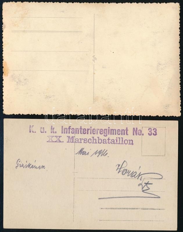 Leírás: cca 1914-1945 4 db katonai fotólap, közte megírt, 8×13 cm