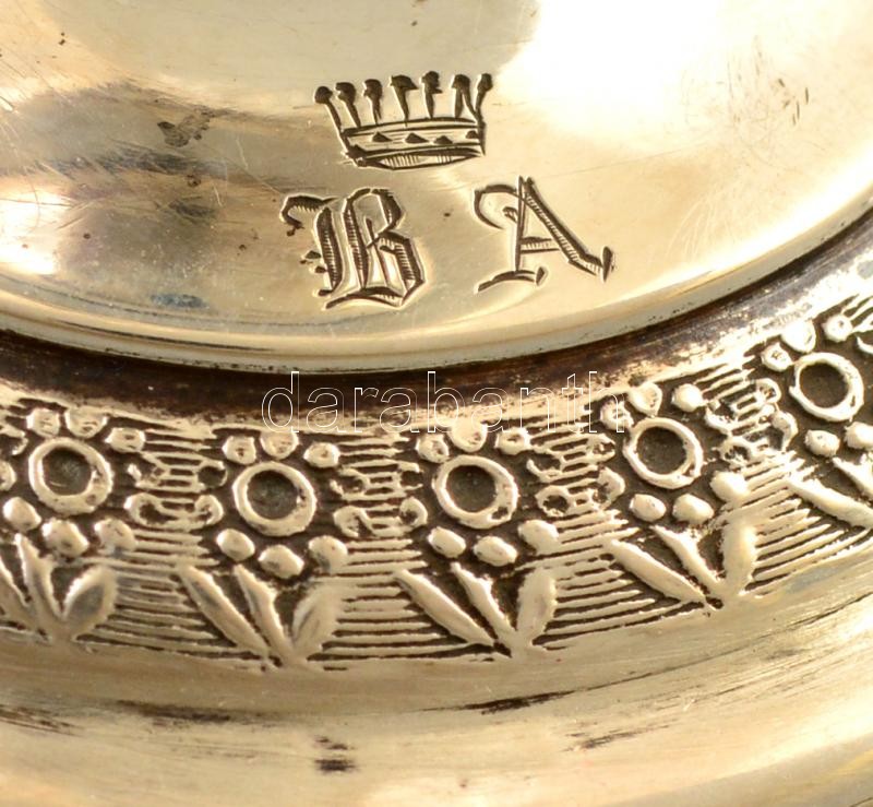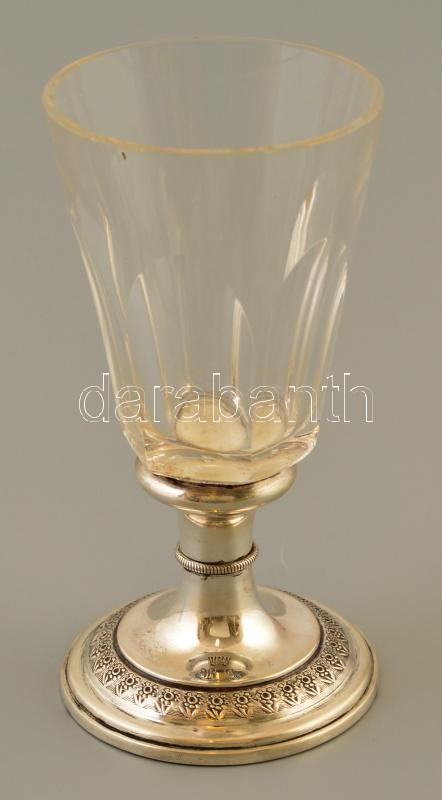 Leírás: Antik ezüst (Ag.) talpas csiszolt pohár, jelzett, monogrammal és grófi koronával, peremén nagyon apró csorbával, bruttó: 125 g, m: 12 cm