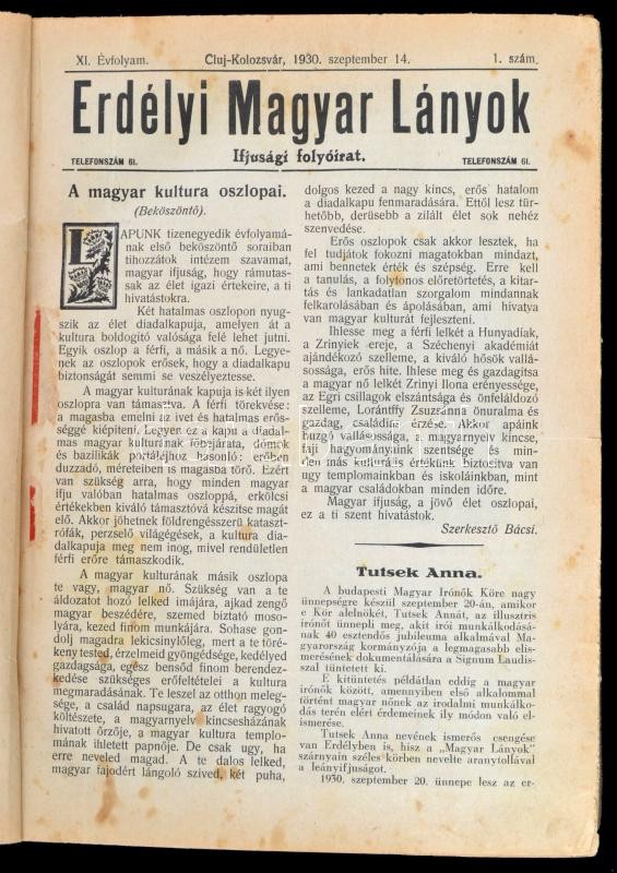 1924-1931 Erdélyi Magyar Lányok több majdnem teljes évfolyama. Szerk.: Kende János. Négy félvászon-kötetben, egybekötve, festett lapélekkel, kopott, foltos borítókkal, közte hiányzó számokkal, közte szakadt sérült, lapokkal, és néhány hiányzó lappal, változó, részben megviselt állapotban. Ritka! Erdélyi Magyar Lányok kolozsvári kiadású folyóirat volt, Kende János szerkesztésében, 1920. november 15-1931. december 20. között jelent meg.