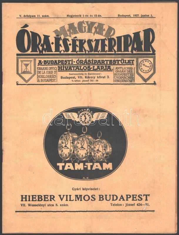 1927 Magyar Óra-, és Ékszeripar. V. évf. 11. sz. 1927. junius 1. Szerk... https://www.darabanth.com/hu/354-Gyorsarveres/354.0/Mutargy-papirregiseg-egyeb/Nyomtatvanyok~500030/1927-Magyar-Ora-es-Ekszeripar-V-evf-11-sz-1927-junius-1-Szerk-Schwarz-Zsigmond-Korab~II2020774