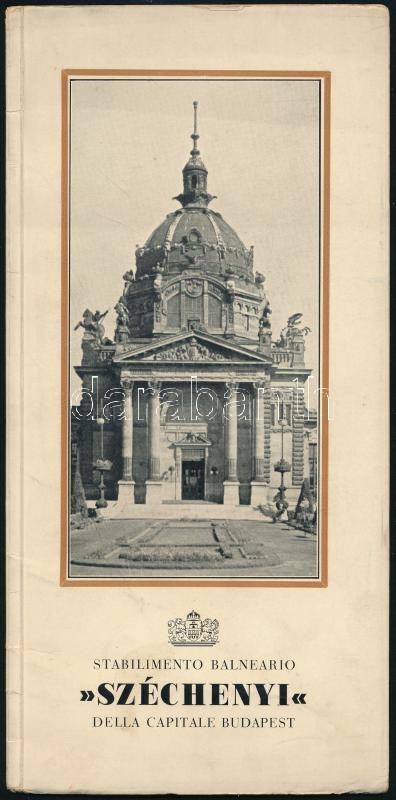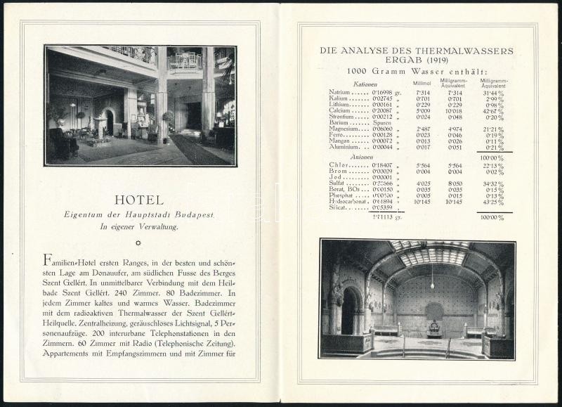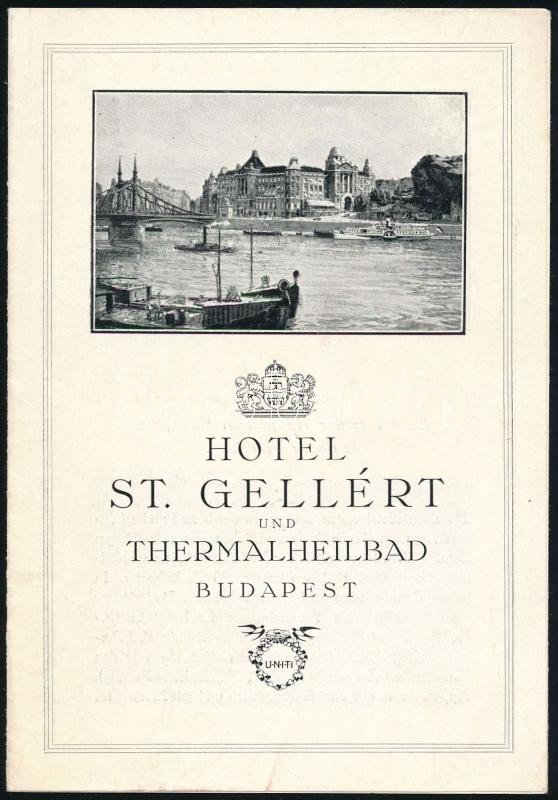 1929 Stabilimento Balneario "Széchényi" della Capitale Budapest. Olasz nyelvű idegenforgalmi prospektus. Bp., 1929. Tip. Muncipiale Budapest, fekete-fehér fotókkal, 12 sztl. lev.+ Hotel St. Gellért und Thermalheilbad. Német nyelvű idegenforgalmi prospektus. Fekete-fehér fotókkal. Bp., 1929, Haupstädtische Hausdruckerei.