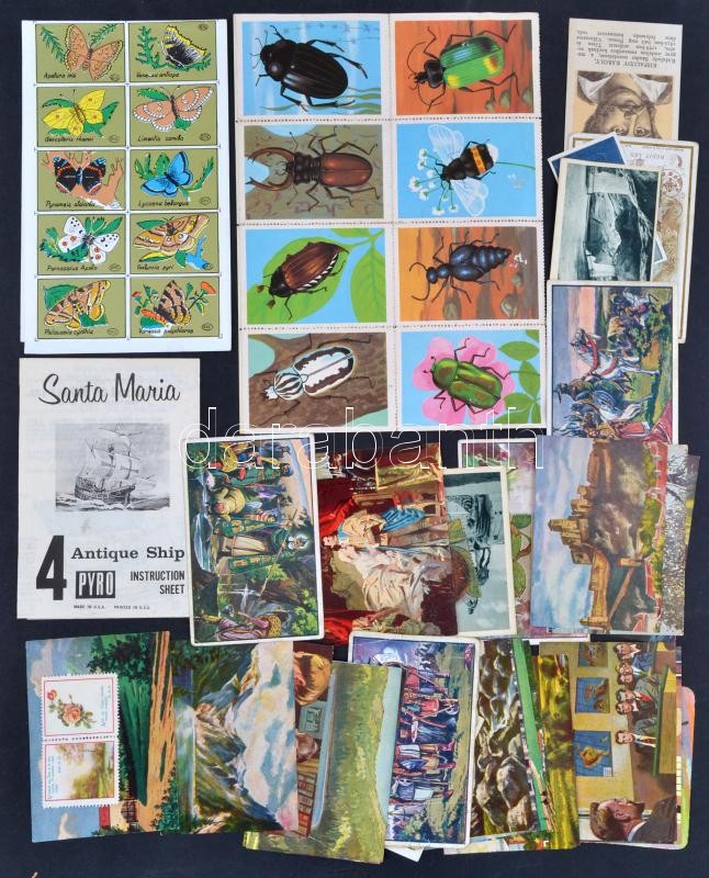 Leírás: 34 db különféle régi gyűjtőkép (Szt. István, Kárpáti képek, stb.) + rovarok és pillangók modern ív
