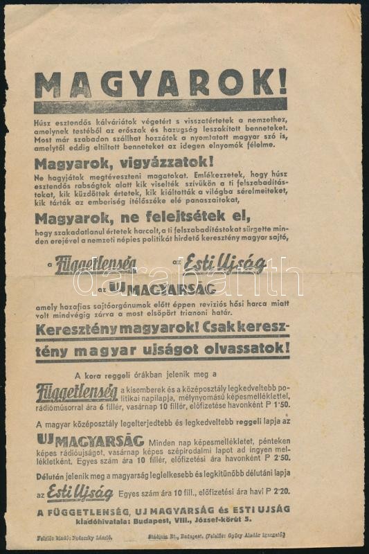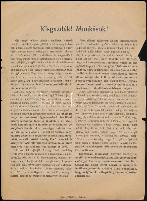 Leírás: cca 1910-1940 3 db röplap: választások, újság hirdetés