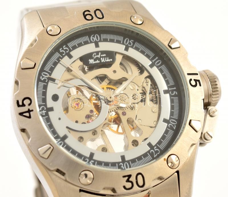 Leírás: Graf von Monte Wehro mechanikus karóra. fém szíjjal, átlátszó tokkal, újszerű, működő állapotban d: 42 mm
