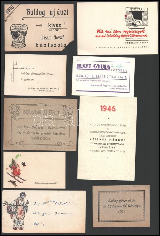 Leírás: 11 db különféle karácsonyi és újévi jókívánság üdvözlőlap, kártya, közte számos reklámos darabbal