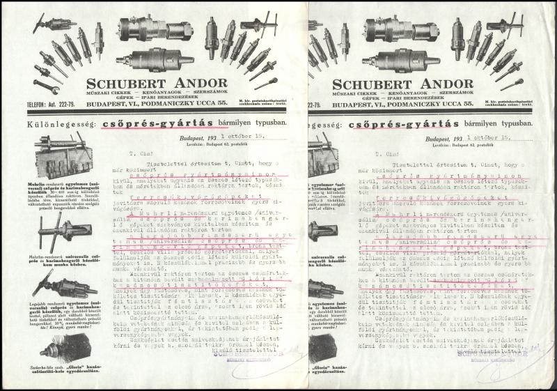 Leírás: 1933 Schubert Andor műszaki cikk kereskedő 2 képes levélpapír.