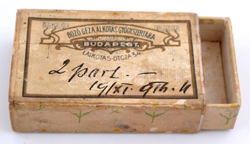Leírás: Bozó Géza Alkotás Gyógyszertára Budapest papírdoboz, 6×4×1,5 cm