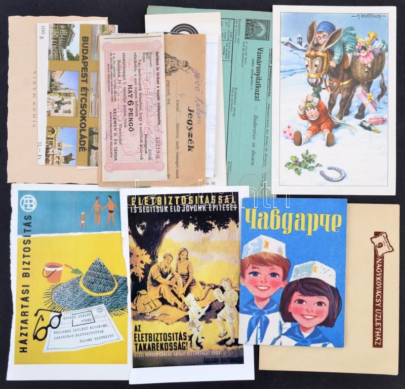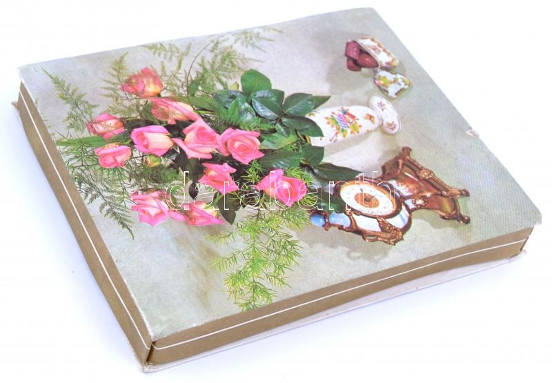Leírás: Duna Csokoládégyár Rózsa dessert csokoládés doboz, benne különféle érdekes, részben reklámos papírrégiségekkel