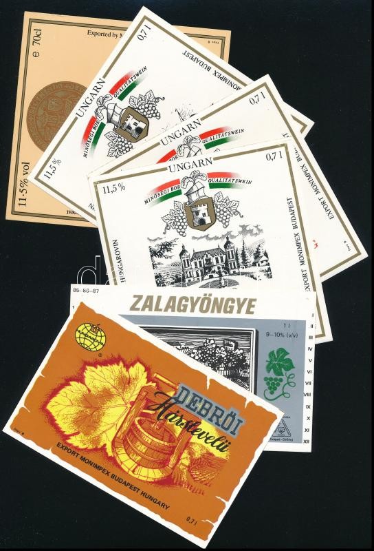 Leírás: Vegyes modern magyar borcímke tétel, magyar, angol és német nyelven, 11 db.