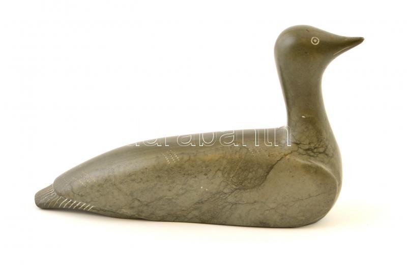 Leírás: Kacsa, faragott zsírkő, jelzett (Canada eskimoart), apró kopásnyomokkal, m: 10 cm