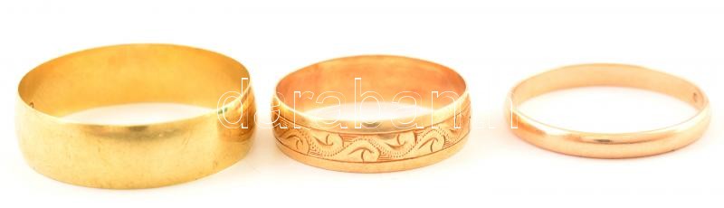 Leírás: Arany (Au. ) 14 K karikagyűrűk ( 3db), méret: 58,60, 72, jelzett, összesen nettó: 8,2 g