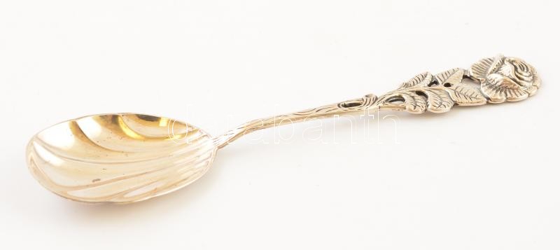 Leírás: Ezüst habos kanál rózsa díszítéssel. Jelzett 14 g 12 cm