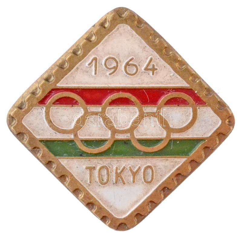 1964. "Tokiói olimpia" zománcozott jelvény (26x26mm) T:1- https://www.darabanth.com/hu/354-Gyorsarveres/354.0/Numizmatika/Falerisztika-Kituntetesek-jelvenyek~1500017/1964-Tokioi-olimpia-zomancozott-jelveny-26x26mm-T1-~II2017273