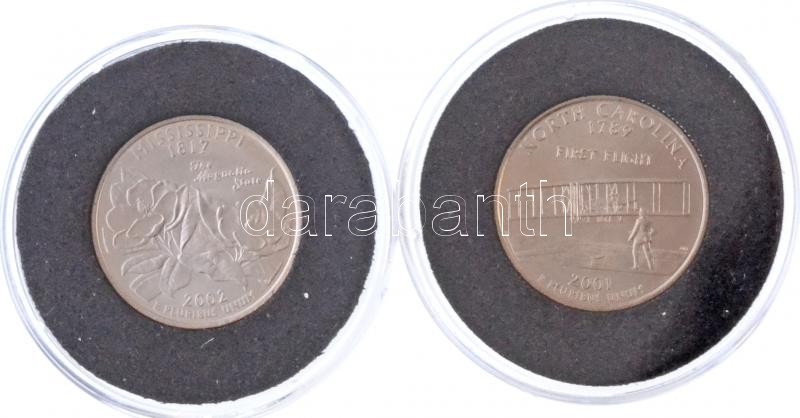 Amerikai Egyesült Államok 2001P 1/4$ "50 állam - Észak-Karolina" Cu-Ni + 2002P 1/4$ "50 állam - Mississippi" Cu-Ni tanúsítvánnyal T:1,1-