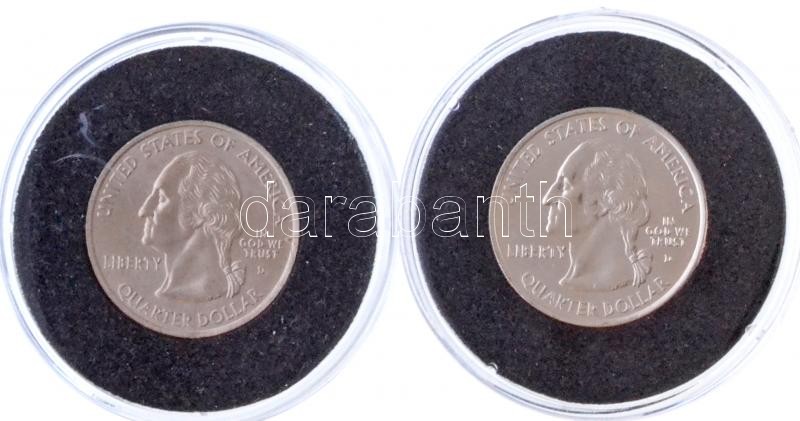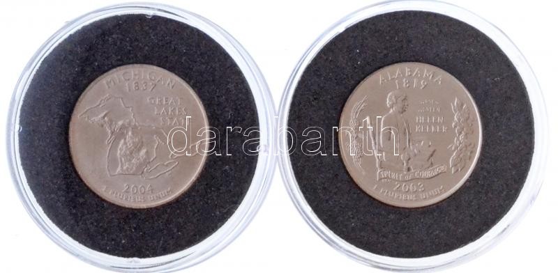 Amerikai Egyesült Államok 2003D 1/4$ "50 állam - Alabama" Cu-Ni + 2004D 1/4$ "50 állam - Michigan" Cu-Ni tanúsítvánnyal T:1