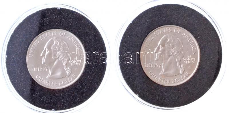 Amerikai Egyesült Államok 2005P 1/4$ "50 állam - Nyugat-Virginia" Cu-Ni + 2006D 1/4$ "50 állam - Észak-Dakota" Cu-Ni tanúsítvánnyal T:1