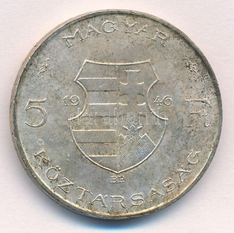 1946. 5Ft Ag "vastag Kossuth" fordított peremirattal T:1-,2 patina Ad... https://www.darabanth.com/hu/354-Gyorsarveres/354.0/Numizmatika/Magyar-es-magyar-verdejelu-fem-es-ezustpenzek~1500008/1946-5Ft-Ag-vastag-Kossuth-forditott-peremirattal-T1-2-patina-Adamo-F8~II2017894