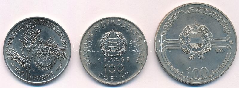 Leírás: 1980. 100Ft "Szovjet-magyar közös űrrepülés" + 1981. 100Ft Ni "FAO I. - Világélelmezési nap" + 1982. 100Ft Cu-Ni "Labdarúgó Világbajnokság T:1,1-