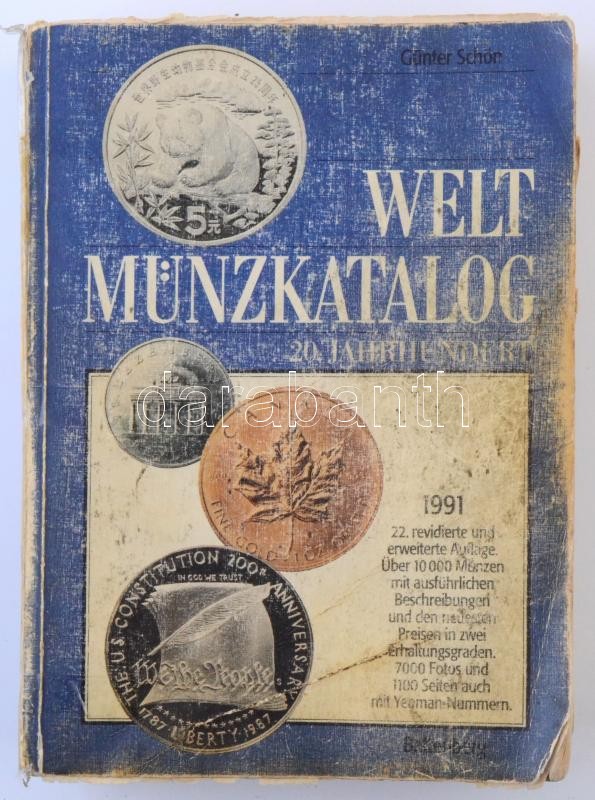 Leírás: Günter Schön: Welt Münzkatalog 20. Jahrhundert. Battenberg, 1991. Erősen használt, sérült állapotban.
