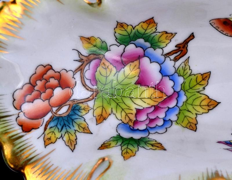 Leírás: Herendi Viktória mintás porcelán leveles tálka, kézzel festett, jelzett, kis kopásnyomokkal, 15×9 cm
