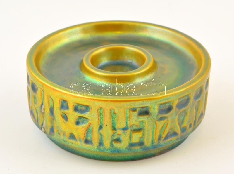 Leírás: Zsolnay eozin mázas hamutál, jelzett, apró kopásokkal, d: 12 cm