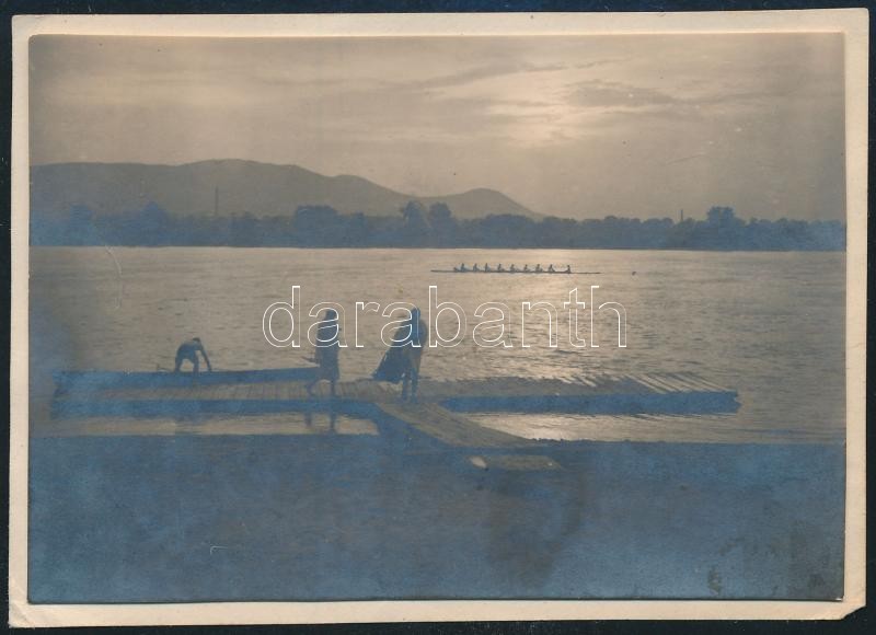 Leírás: 1931. július 5. Kinszki Imre (1901-1945) budapesti fotóművész hagyatékából 1 db vintage fotó, a szerző által datálva (Evezősök a Dunán), 6,2x8,6 cm