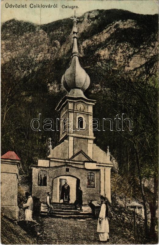 Leírás: 1916 Csiklovabánya, Németcsiklova, Csiklóbánya, Csiklova, Ciclova Montana; Kalugra ortodox kolostor. Kiadja Káden József / Manastirea Calugara / Romanian Orthodox monastery (Rb)