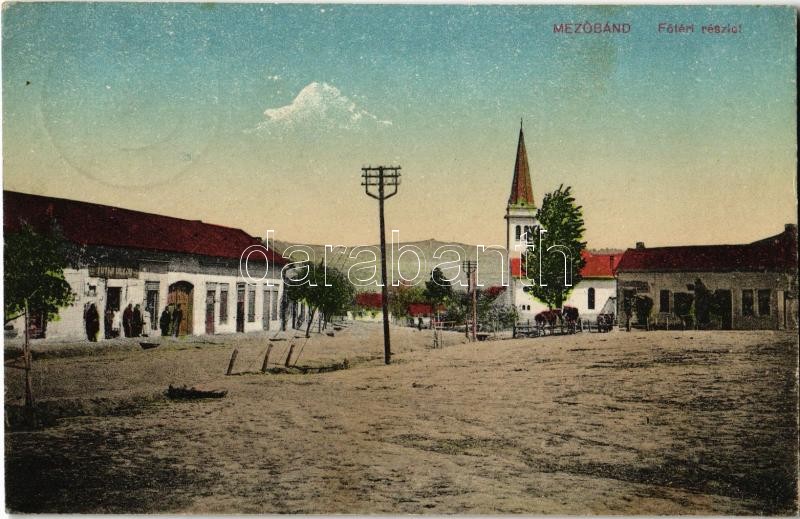 1923 Mezőbánd, Band, Bandorf; Fő tér, templom, üzletek / main square, ... https://www.darabanth.com/hu/355-Gyorsarveres/355.0/Kepeslapok/Erdely~1000006/1923-Mezoband-Band-Bandorf-Fo-ter-templom-uzletek-main-square-church-shops~II2031397