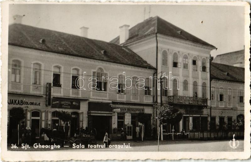 Sepsiszentgyörgy, Sfantu Gheorghe; Sala teatrul orasului / Városi színház, Stefán M. Deák, Herman Berkovics üzlete, Nivea és Azuga sör reklámtáblák / city theater, shops, beer advertisement + 1940 Sepsiszentgyörgy visszatért So. Stpl. (EK)