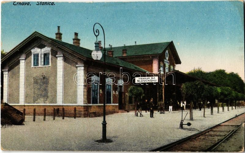 Nagyszombat, Tyrnau, Trnava; vasútállomás / Stanica / railway station ... https://www.darabanth.com/hu/355-Gyorsarveres/355.0/Kepeslapok/Felvidek~1000007/Nagyszombat-Tyrnau-Trnava-vasutallomas-Stanica-railway-station-vagott-cut~II2032437