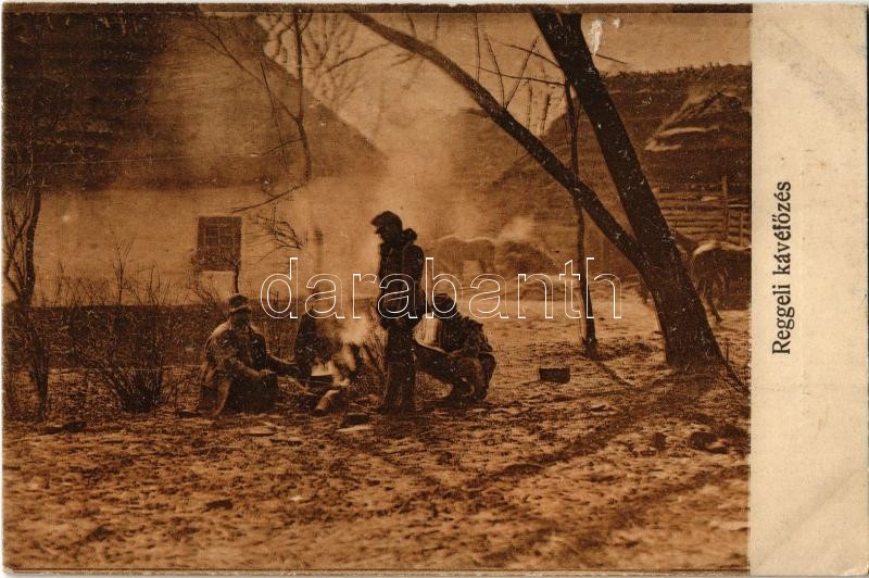 Reggeli kávéfőzés / WWI Austro-Hungarian K.u.K. military, soldiers bre... https://www.darabanth.com/hu/355-Gyorsarveres/355.0/Kepeslapok/Katonai~1000065/Reggeli-kavefozes-WWI-Austro-Hungarian-KuK-military-soldiers-brewing-coffee-in-the-morning~II2031359